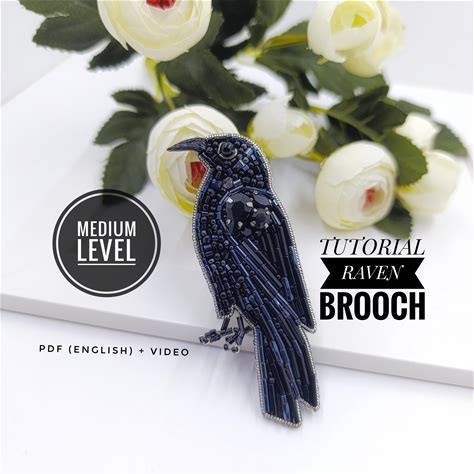 DIY PDF Tutorial Of Raven Brooch, Embroidery Crow Pattern, Beaded Bird Tutorial, Bead Patterns For Adults, Black Gothic Gifts For Women
