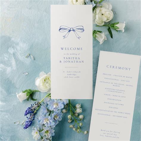 Simple Vintage Bow Blue Wedding Program