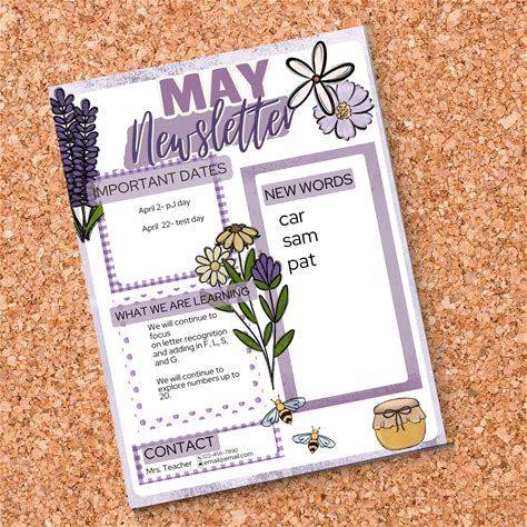 May Newsletter Template, Spring Theme Newsletter, School Newsletter Template, Monthly Newsletter Spring Theme