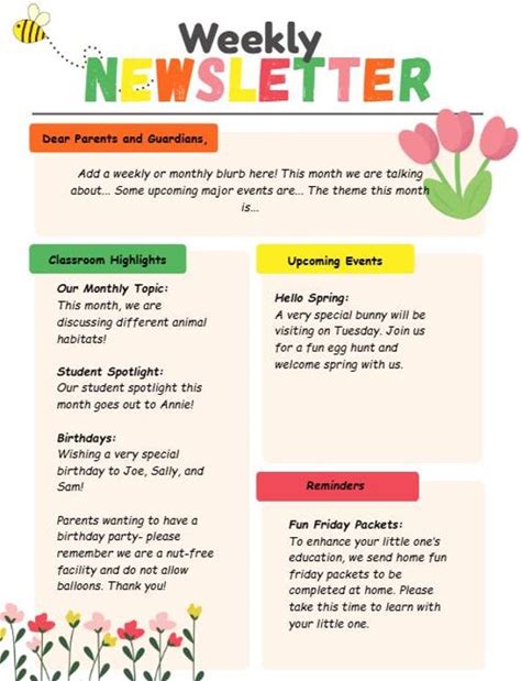 Newsletter Template-Editable Bee-Themed Spring & Summer Communication Tool For Classroom, Preschool, Daycare, Or Office