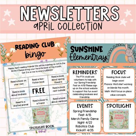 April Spring Newsletter Template: Teacher, PTO, Church (Digital Download)