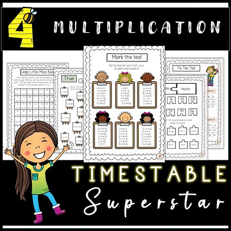4 Timestable Activity Booklet Worksheet And Games- Multiplication Maths