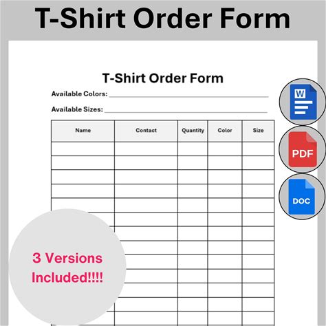 T-Shirt Order Template. T-Shirt Order Form. Printable Craft Order Form. Purchase Order Form. Editable Google Docs, Word PDF Instant Download
