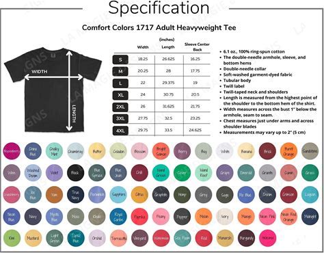 Comfort Colors 1717 Colour Chart Canva Template Tshirt Comfort C