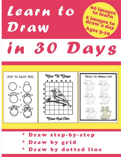 30 Days Learning To Draw: 30-Day Drawing Checklist With Step By Step Instructions On How To Draw Different Subjects Such As Animals, Plants, Humans, .