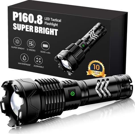 Sinvimes Rechargeable Flashlights High Lumens, XHP160.8 Powerful Tactical Flashlight With Zoomable & 6 Modes & IPX7 Waterproof, Super Bright