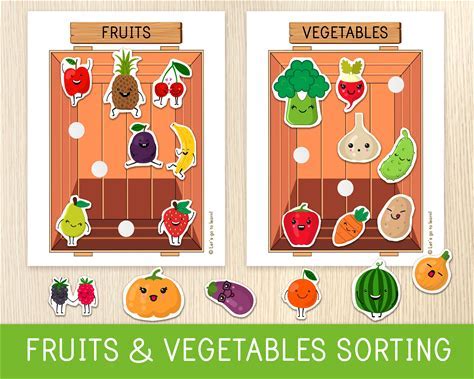 Fruits & Vegetables Sorting Activity - Preschool Worksheets - Toddler Learning Binder - Matching Game, Busy Book Pages, Homeschool Printable