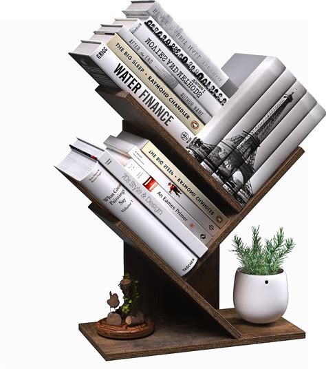 Godferyxin Tree Bookshelf, 3-Tier Wood Small Bookshelf And Mini Bookcase For Office, Home Or School Desk Book Shelf For For Displaying Books, Cds,