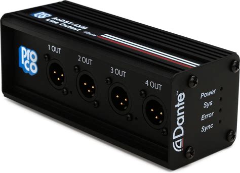 Pro Co AODST-4XM 4-Channel Dante Drop Box Poe-Powered Dante Drop Snake With 4X Neutrik XLRM Analog Outputs (Line Level) And 1X Locking Neutrik