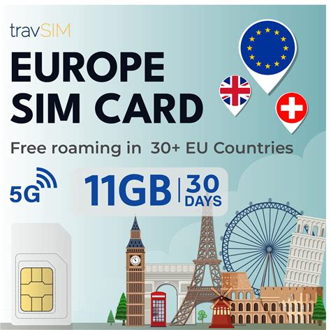 Travsim Europe SIM Card | 11GB Data With 4G/5G Speeds | Unlimited Calls | Use In The UK, Switzerland & 30+ EU Countries | Plan On SIM Card For Europe