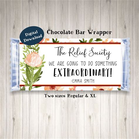 Printable Candy Bar Wrappers For Relief Society | Relief Society Birthday Party Favor | Relief Society Bday | Printable Candy Bar Wrappers
