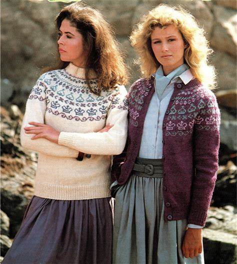 Ladies Fair Isle Yoke Cardigan & Sweater PDF Knitting Pattern DK 30-40" In English 1432