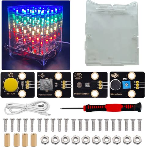 Kidsbits DIY RGB LED Cube Electronic Kit 4X4x4 For Arduino Leonardo R3 Voice Control Support
