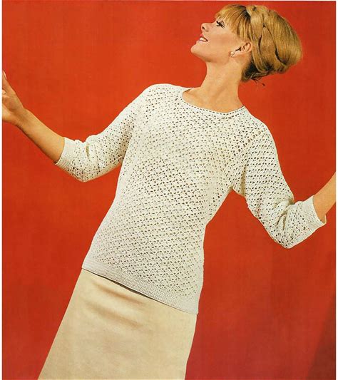 Fan Shell Crochet Stitch Long Or 3/4 Length Sleeve Ladies Jersey Top DK 8 Ply 34"-38" Vintage Crochet Pattern PDF Instant Download