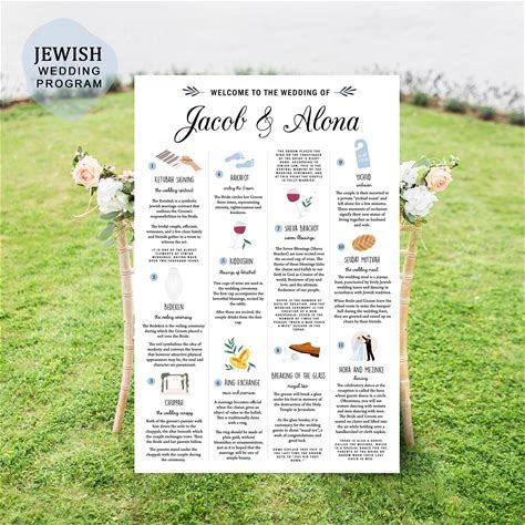 Jewish Wedding Program Guide, Wedding Ceremony Template, Infographic Wedding Program, Hebrew Wedding, Ketubah, Chuppah, Jewish Traditions