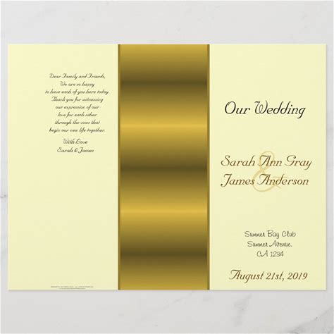 Cream And Gold Jewish Wedding Program
