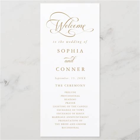 Gold Romantic Calligraphy Wedding Ceremony Program