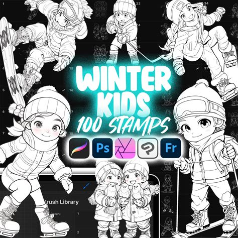 100 Procreate Kids Winter Sport Stamps | Procreate Christmas Kids Stamps | Procreate Kids Playing Stamps | Procreate Boys | Procreate Girls