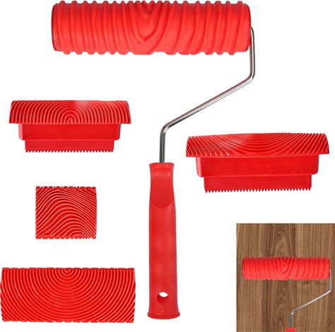Konvixon 18PCS Wood Grain Tool, Wood Graining Tool Set With Extra 12Pcs 4Inch Paint Roller Kit With Trayrubber Wood Grain Roller Tool For Painting