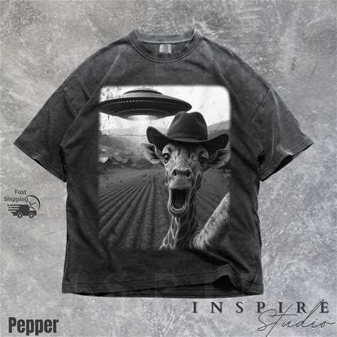 Funny Cowboy Giraffe UFO Shirt, Alien Meme Unisex Tee, Giraffe Selfie UFO Abduction Funny Graphic Tee, VT058