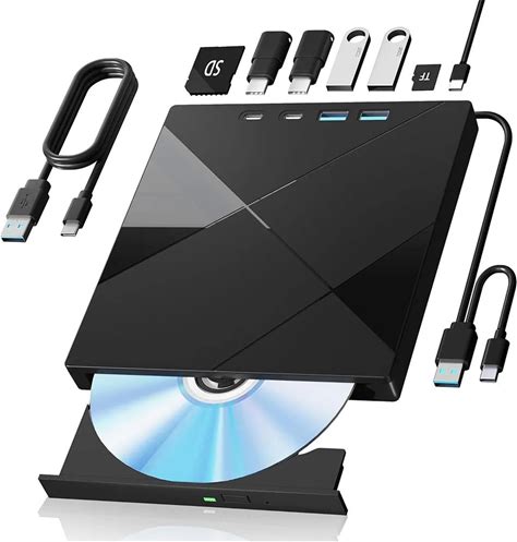 External DVD Drive USB 3.0 Type-C USB Portable Player For Laptop CD DVD +/-RW Disk Drive CD ROM Burner Writer CD/DVD Burner Reader Compatible With Desktop Windows Linux OS Apple Macbook - Radiant Selections(Black)