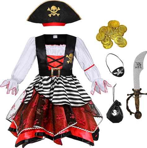 Girl Cosplay Pirate Costume Child Striped Lace Princess Dress For Kids Captain Performance Halloween