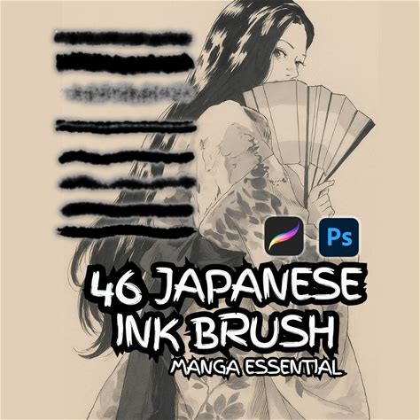 46 Ink Brushes Procreate, Ink Brush Photoshop ,Japan Ink Brush, Chinese Ink Brush, Ink Pen Procreate, Ink Pen Photoshop