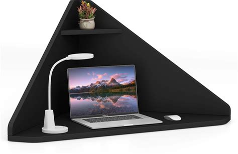 GOFLAME Floating Corner Desk, Wall Mounted Triangular Computer Desk W/Storage Shelf, Space-Saving Design, 90° Wooden Floating Home Office Desk For