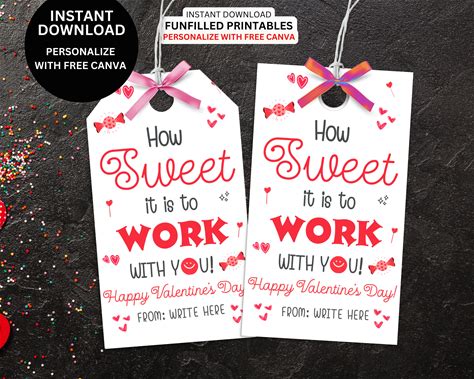 Coworker Valentine's Day Tag Personalizable Template How Sweet It Is To Work With You Employee Appreciation Team Staff Valentine Gifts Label