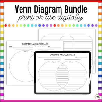 Venn Diagram Bundle For Compare And Contrast Worksheet, Graphic Organizers